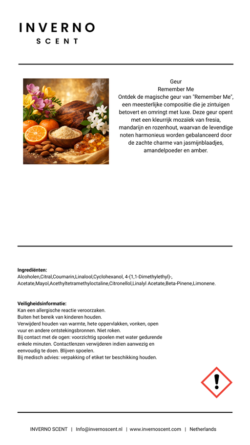 Inverno ScentOorspronkelijke prijs €34,95 - Oorspronkelijke prijs €34,95Oorspronkelijke prijs€34,95€34,95 - €34,95Huidige prijs €34,95| /Op voorraadRemember Me Ontdek de magische geur van Remember Me, een meesterlijke compositie die je zintuigen betovert en omringt met luxe. Deze geur opent me...