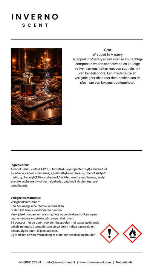 Inverno ScentOorspronkelijke prijs €34,95 - Oorspronkelijke prijs €34,95Oorspronkelijke prijs€34,95€34,95 - €34,95Huidige prijs €34,95| /Op voorraadWrapped In Mystery is een intense houtachtige compositie waarin sandelwood en kruidige vetiver samensmelten met een subtiele hint van kaneelschors....